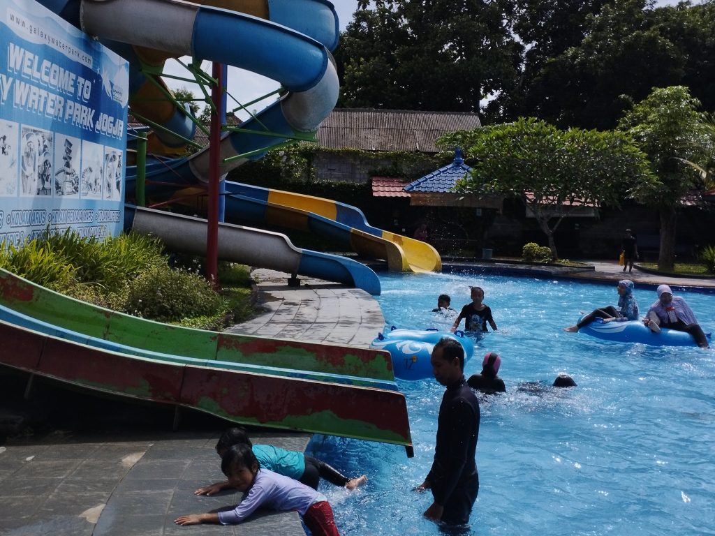 Alhamdulillah, menutup kegiatan belajar semester ini, peserta Bimbel Gratis di Masjid Nurul Iman mengadakan Liburan Ceria bersama di Galaxy Waterpark Yogyakarta.